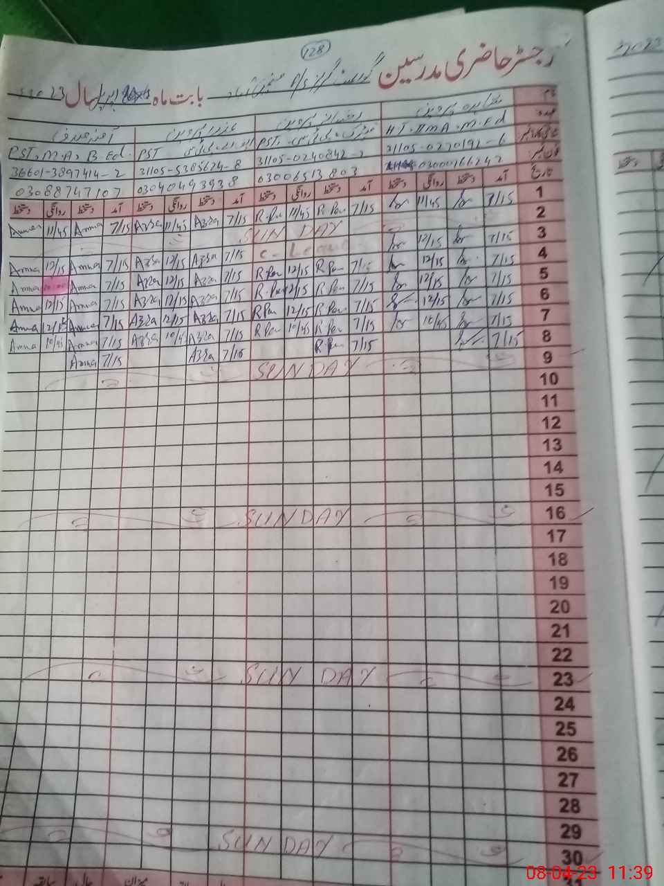 | Name: Sh**** Pe**** Designation: (School Headmaster's/Headmistress's) PST Phone/Cell Number: 03**** |