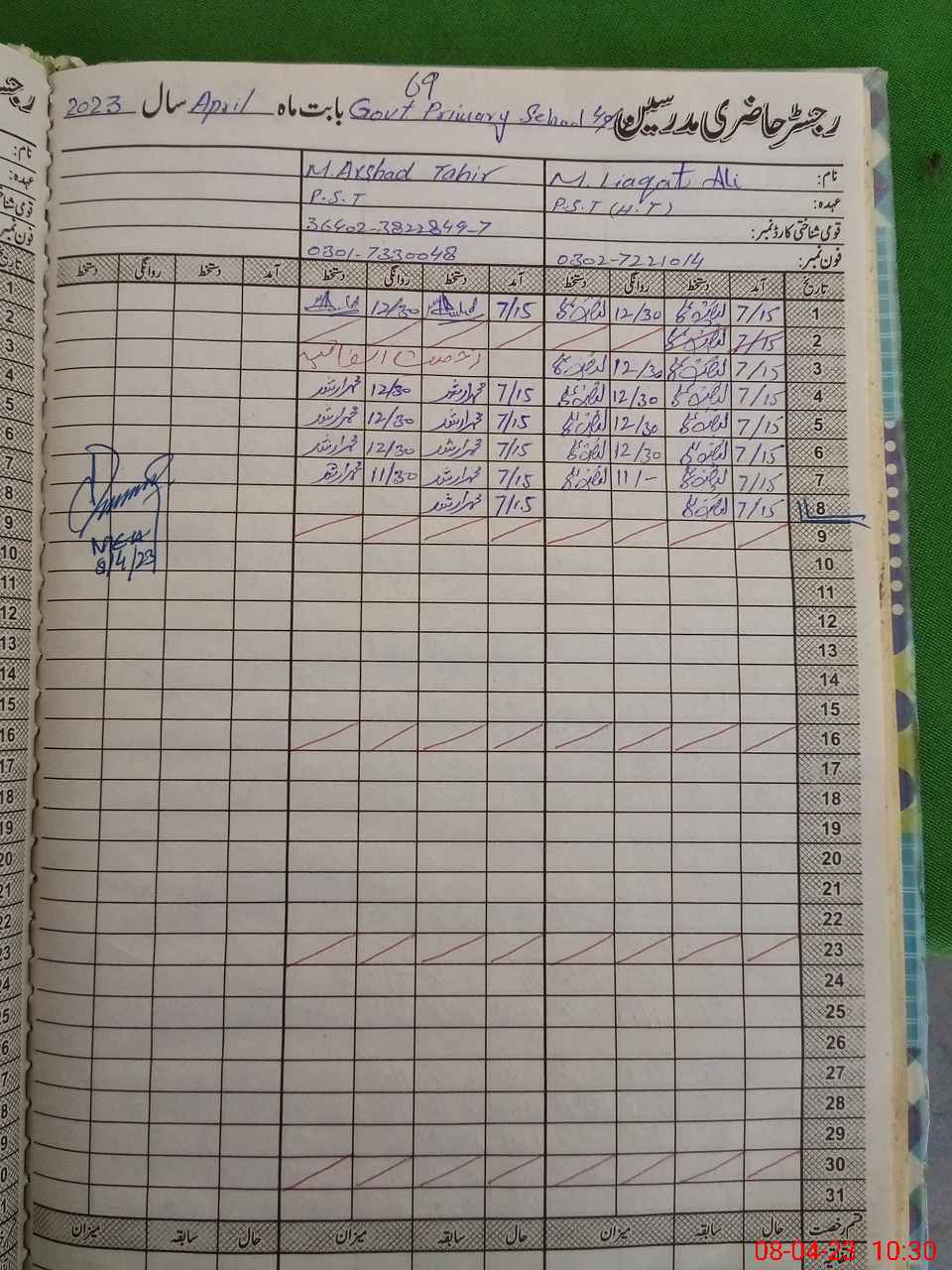 | Name: Li**** Al**** Designation: (School Headmaster's/Headmistress's) PST Phone/Cell Number: 03**** |