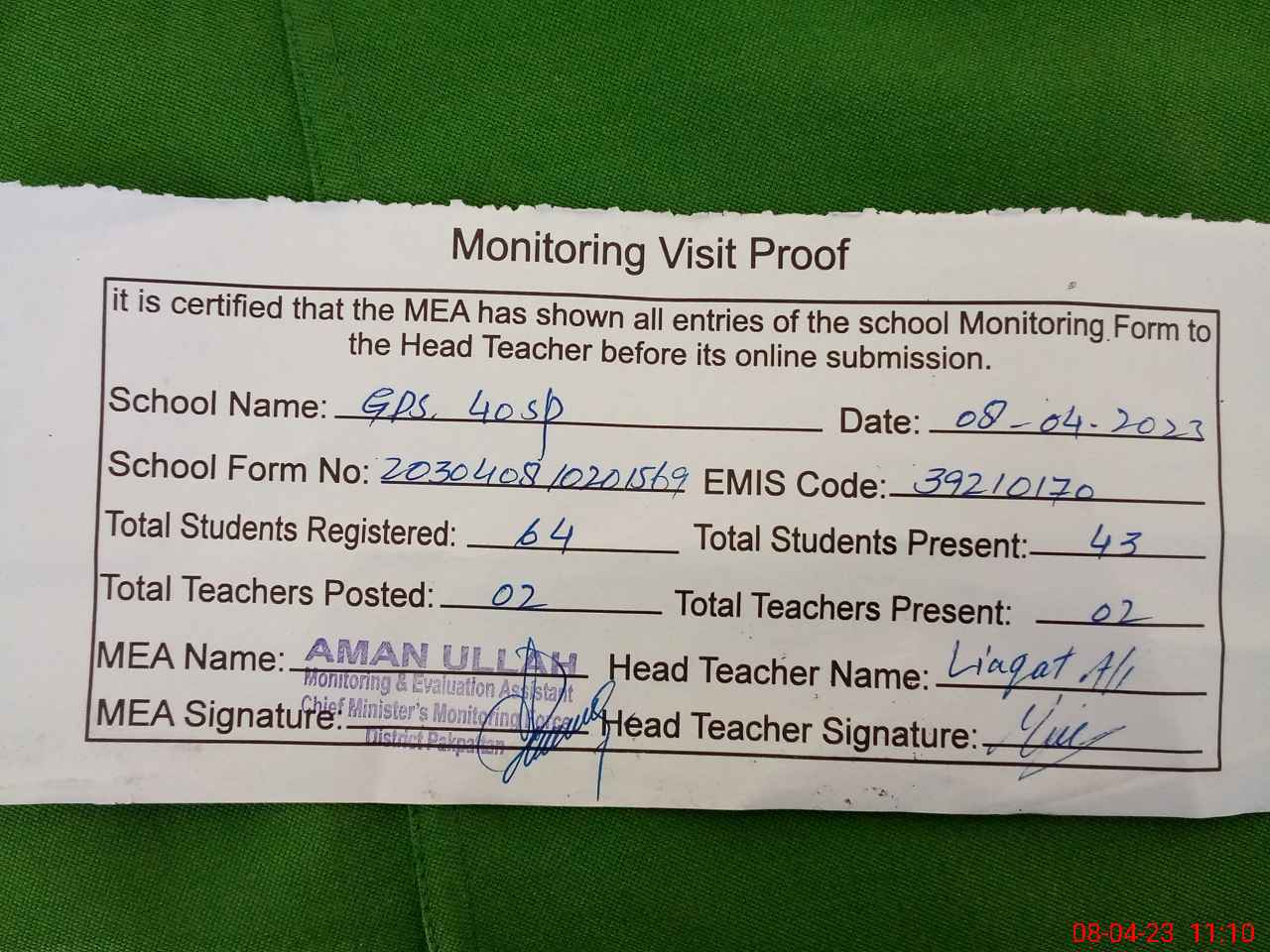 | EMIS Code: 39210170 | Name of School: GPS 40 SP | |||