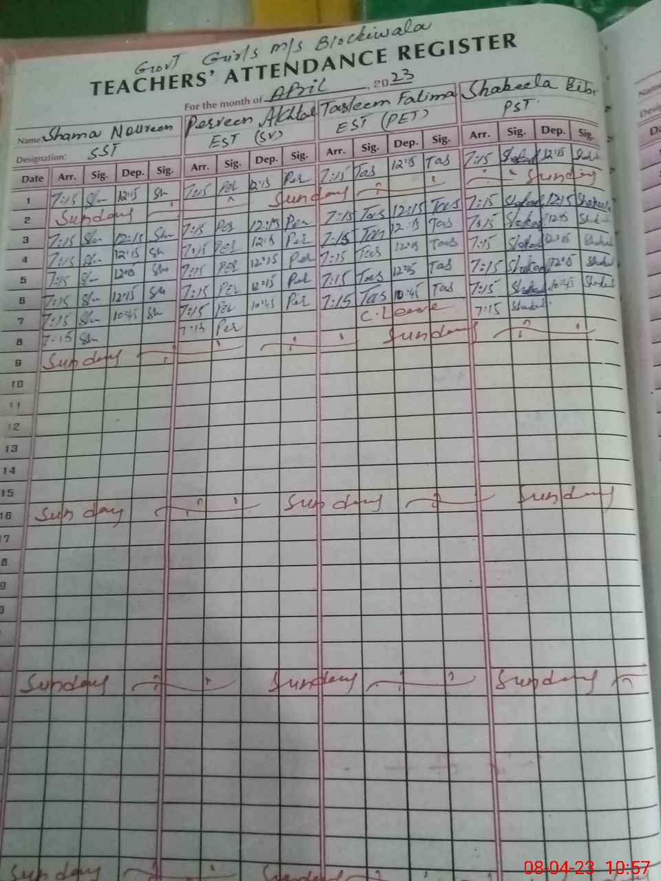 | Name: SH**** NO**** Designation: (School Headmaster's/Headmistress's) S.S.T(ARTS) Phone/Cell Number: 03**** |