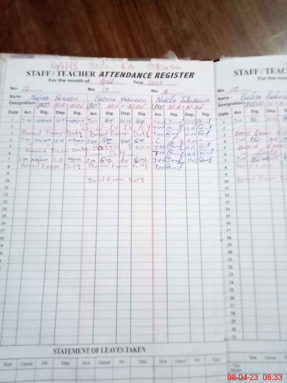 | 35**** | Na**** Pa**** | PST | Regular | 0 | 0 | 0 | 0 | 0 | 0 | 0 | 0 | 0 | Exam Duty |