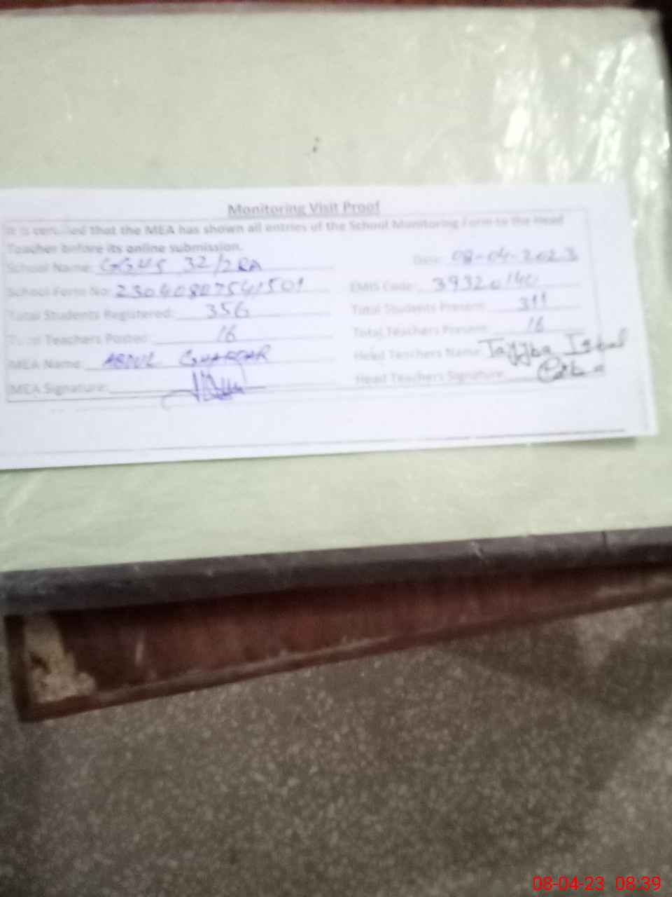 | EMIS Code: 39320140 | Name of School: GGHS 32/2-R OKARA | |||