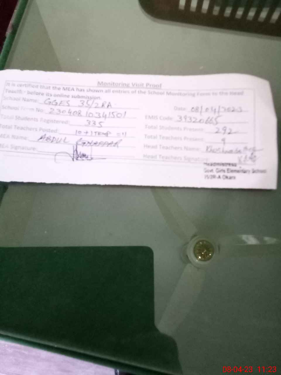 | EMIS Code: 39320665 | Name of School: GGES CHAK NO. 35/2-RA | |||