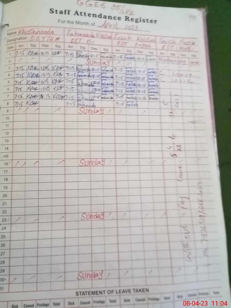 | Name: KH**** BE**** Designation: (School Headmaster's/Headmistress's) SST Phone/Cell Number: 03**** |