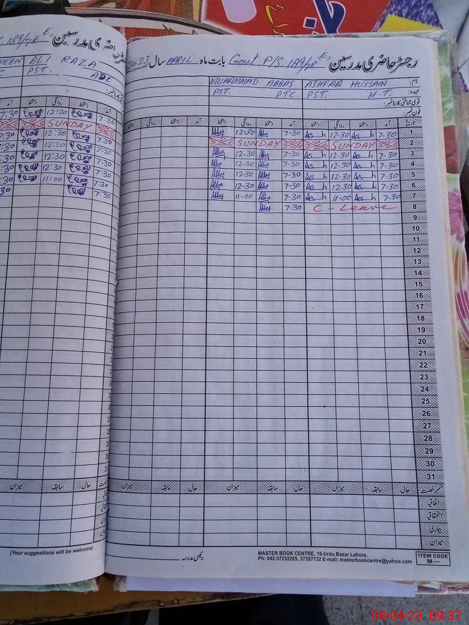 | CNIC | Full Name | Designation | R/C | Absence During Last Calender Month |