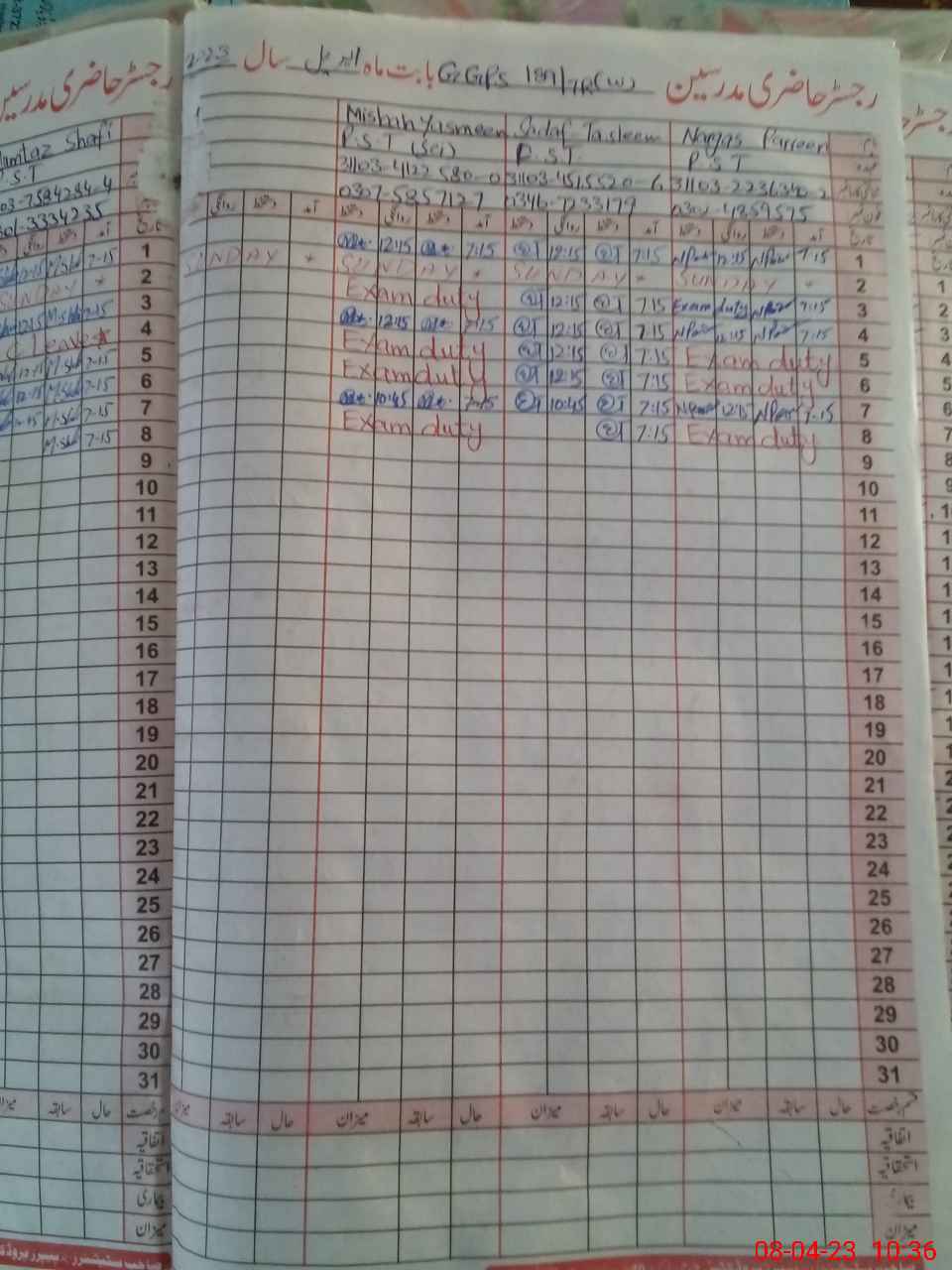 | 31**** | Na**** Pa**** | PST | Regular | 0 | 0 | 0 | 0 | 0 | 0 | 0 | 0 | 0 | Exam Duty |
