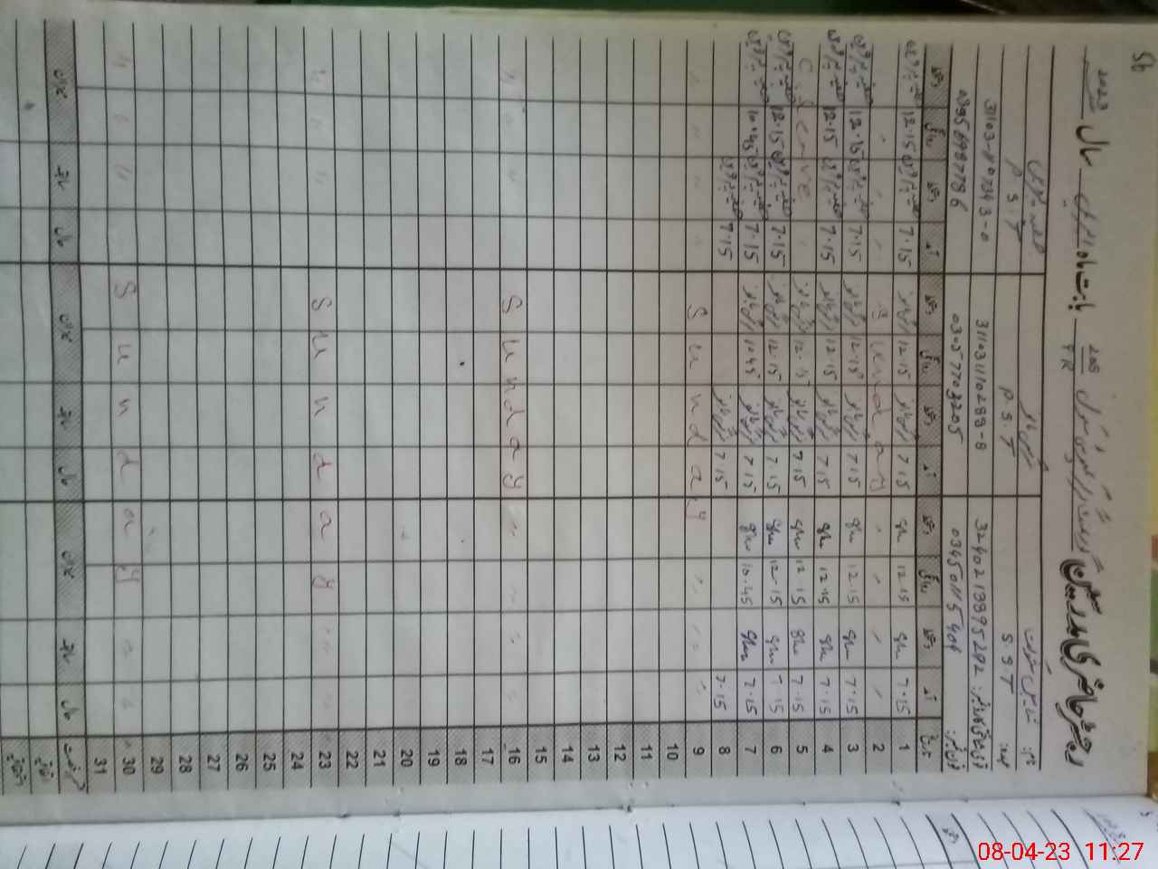 | 31**** | Sa**** Pa**** | PST | Regular | 0 | 0 | 0 | 0 | 0 | 0 | 0 | 0 | 0 | Casual |