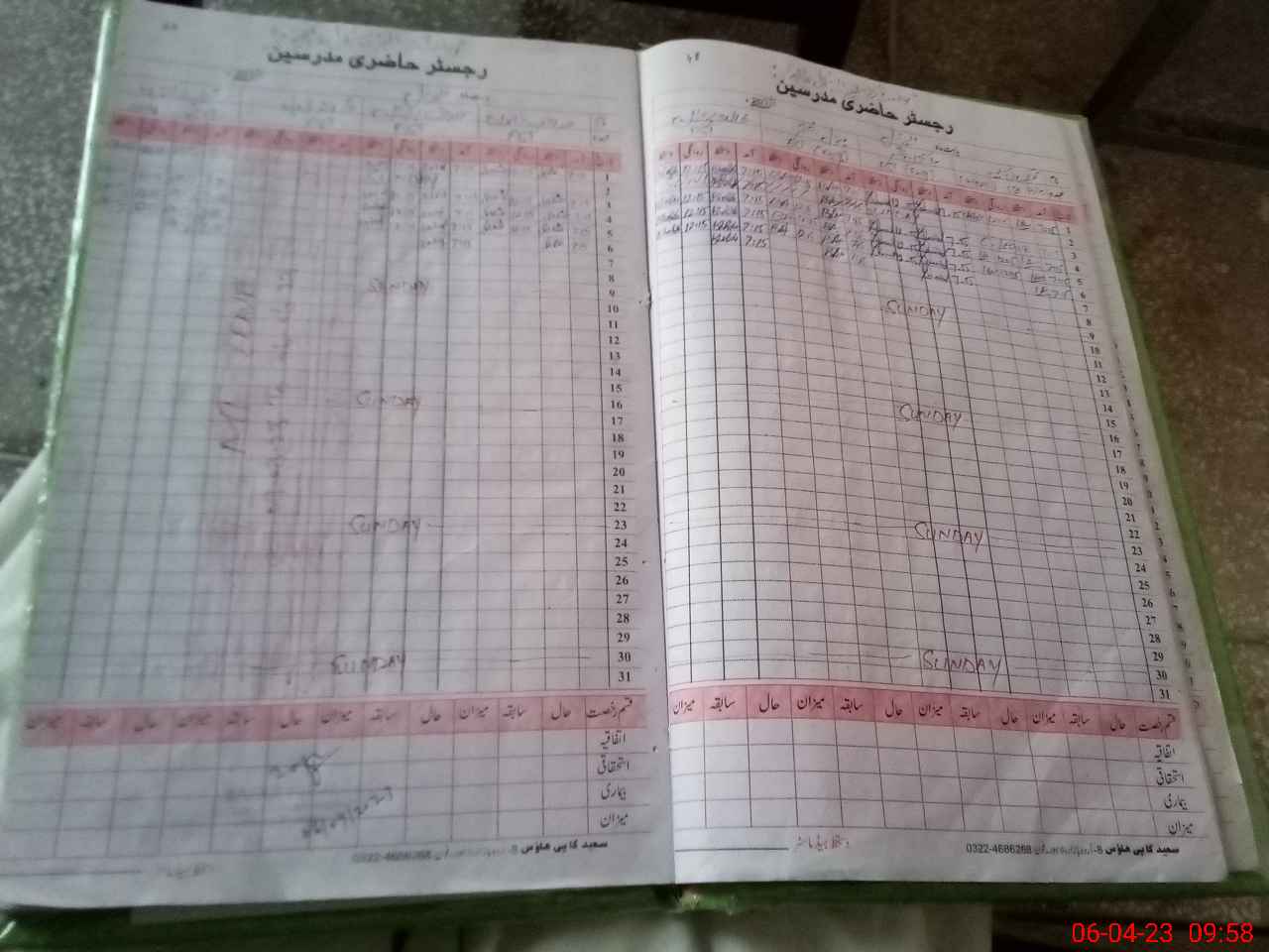| CNIC | Full Name | Designation | R/C | Absence During Last Calender Month |