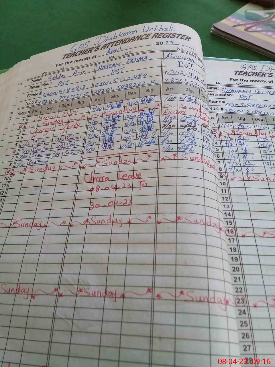| CNIC | Full Name | Designation | R/C | Absence During Last Calender Month |