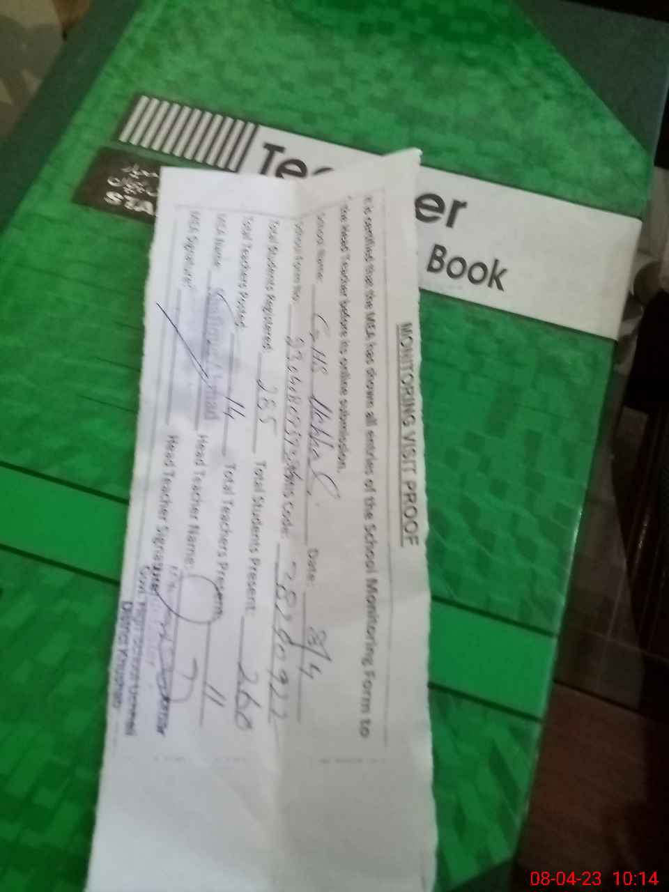 | Attendance Register | Head Teacher | MEA with School | Visit Proof |