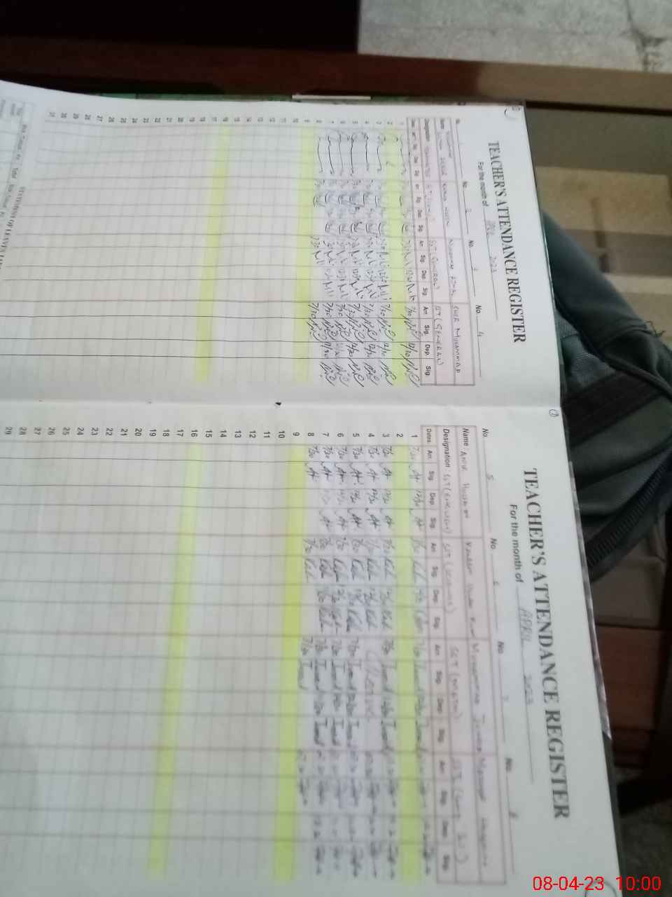 | CNIC | Full Name | Designation | R/C | Absence During Last Calender Month |