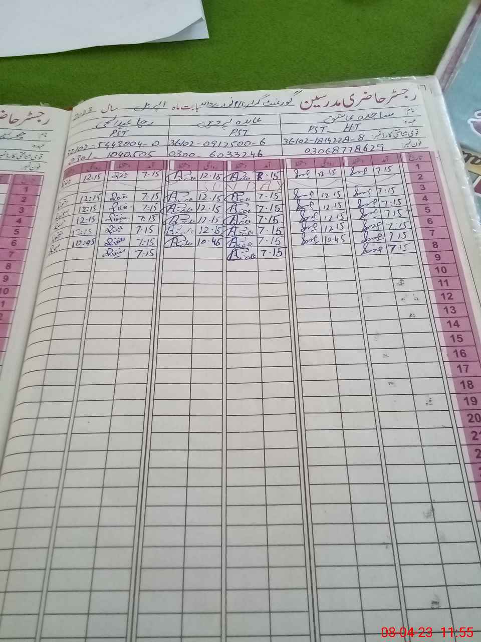 | Name: AB**** PE**** Designation: (School Headmaster's/Headmistress's) PST Phone/Cell Number: 03**** |