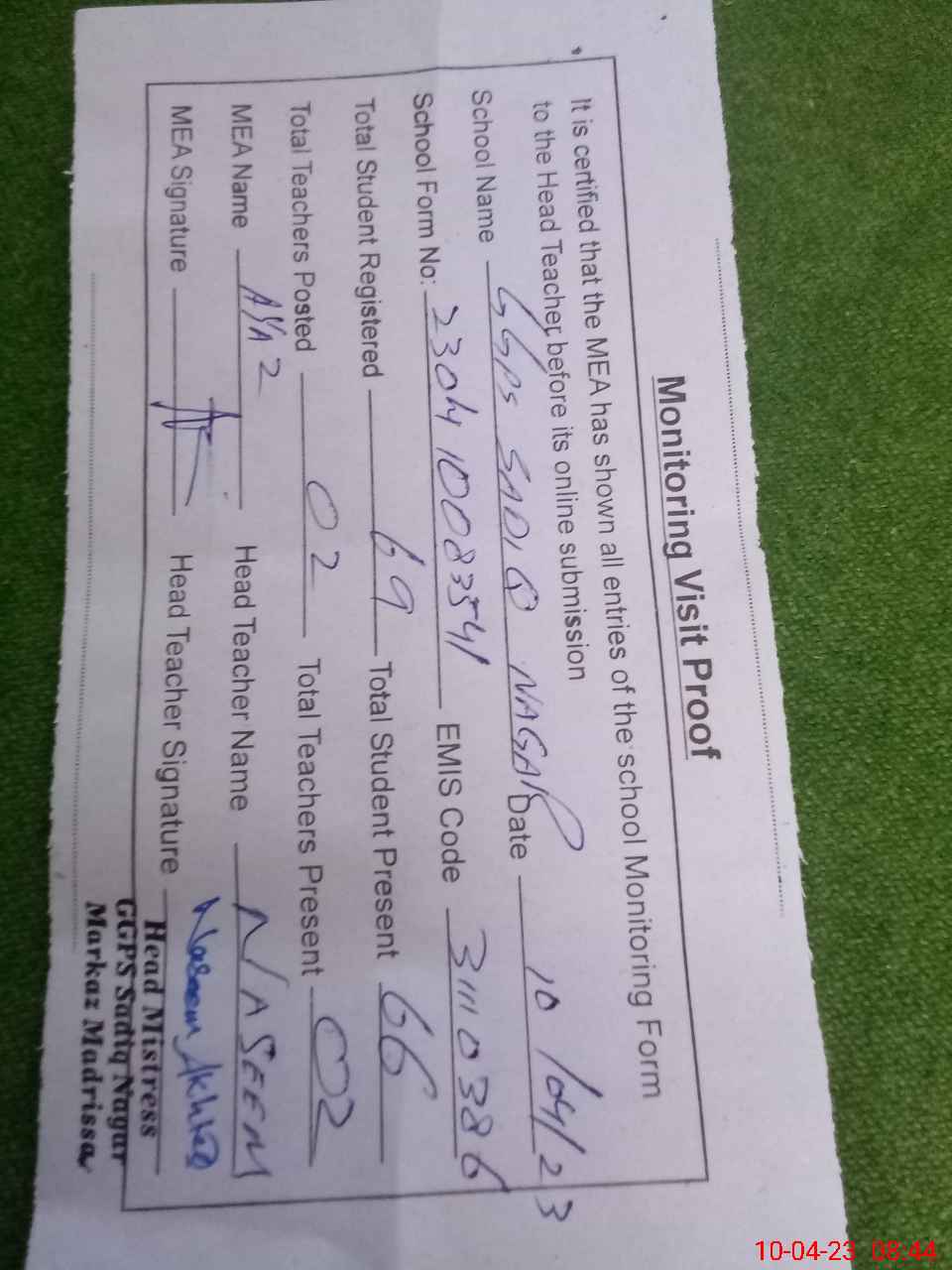 | EMIS Code: 31110386 | Name of School: GGPS SADIQ NAGAR | |||