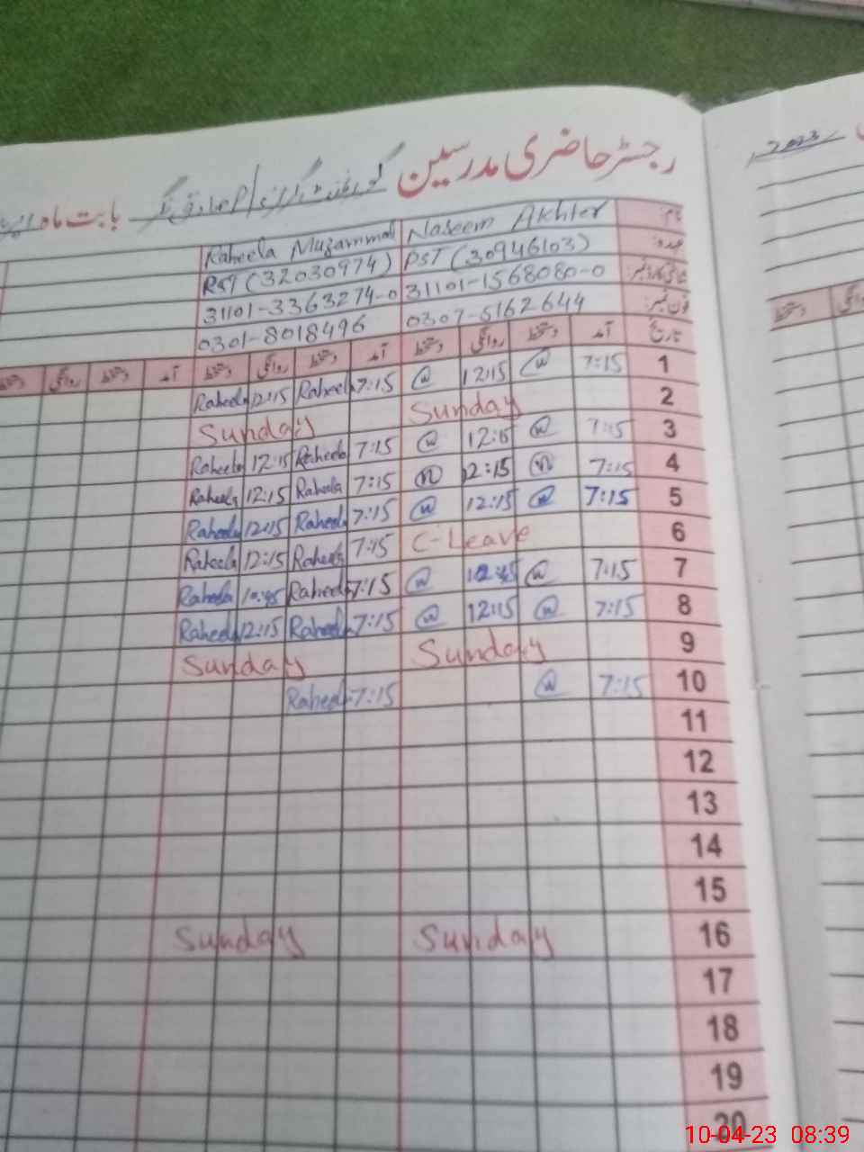 | Name: NA**** AK**** Designation: (School Headmaster's/Headmistress's) PST Phone/Cell Number: 03**** |