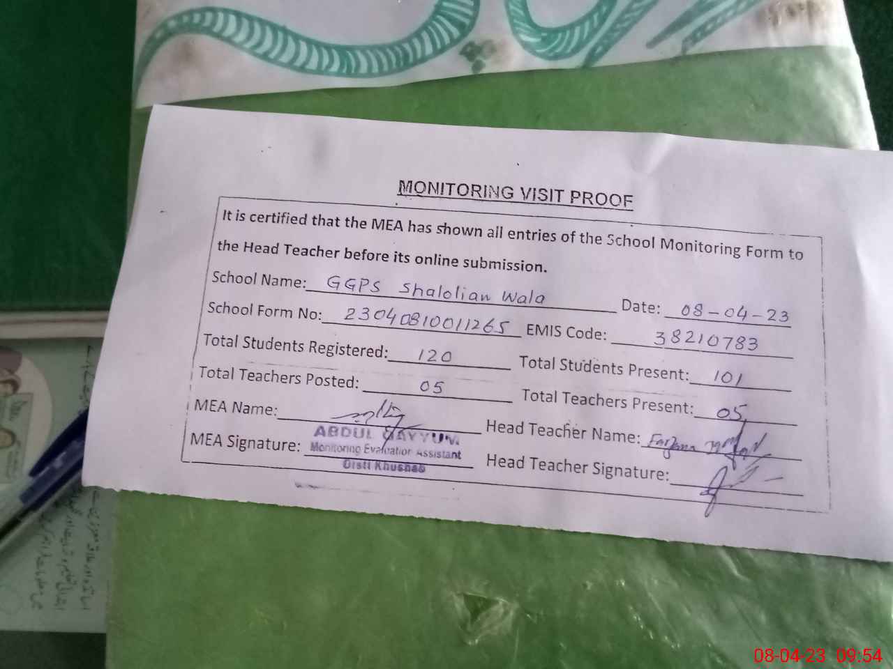 | EMIS Code: 38210783 | Name of School: GGPS MOHALLAH SHALOLIAN WALA | |||