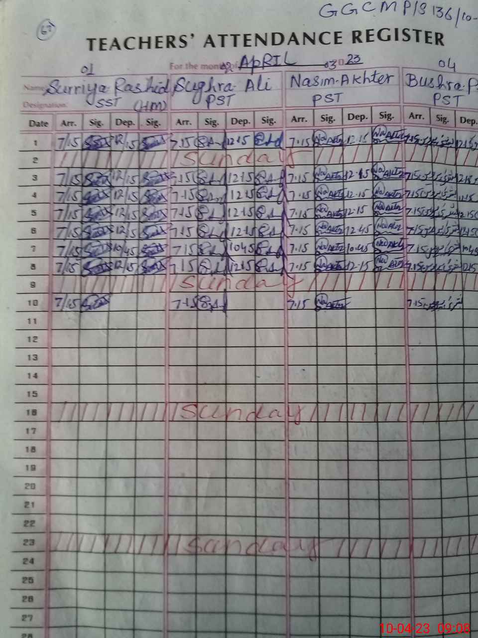 | 36**** | Sh**** Ko**** | PST | Regular | 0 | 0 | 0 | 0 | 0 | 0 | 0 | 0 | 0 | Exam Duty |