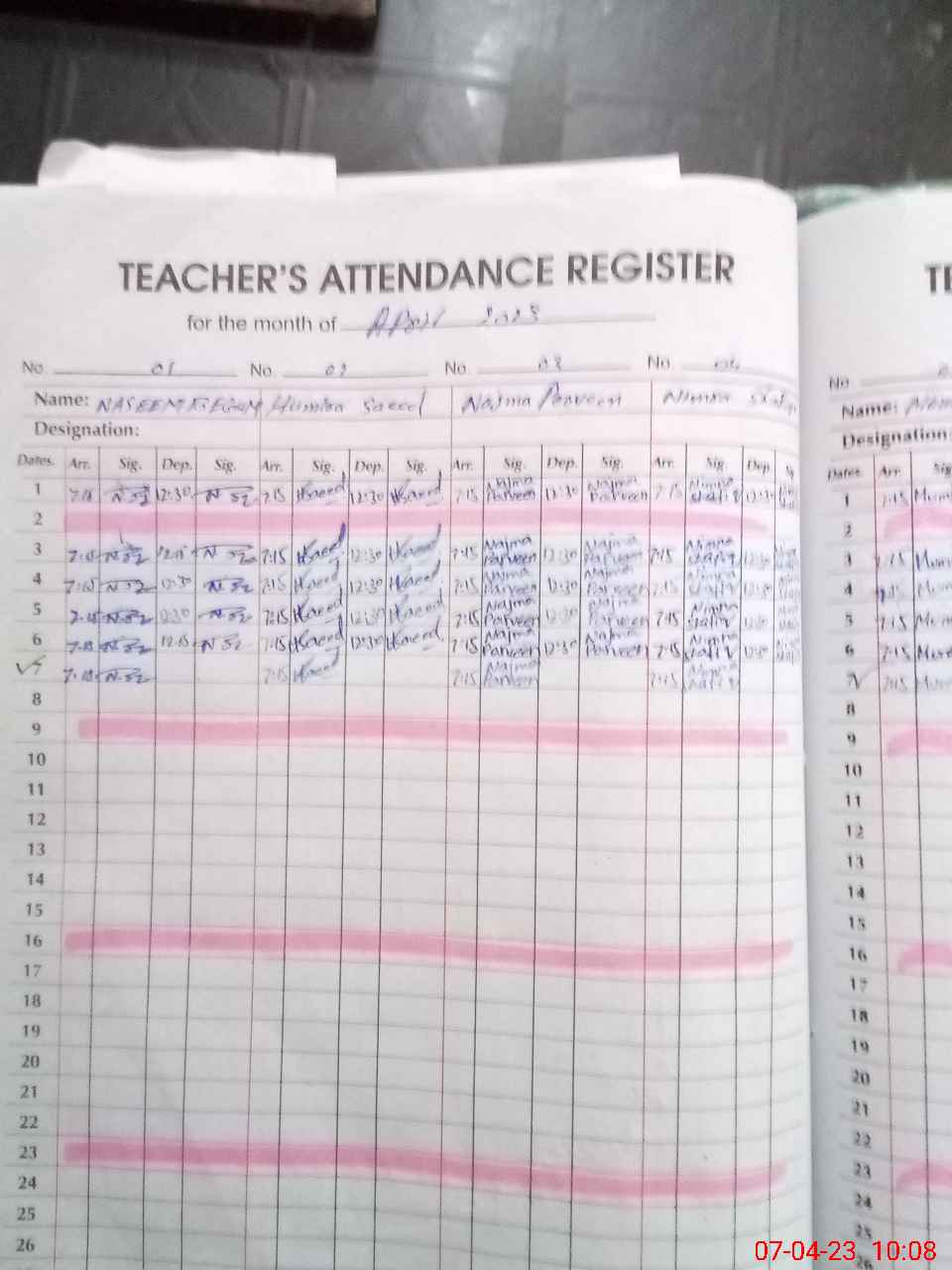 | CNIC | Full Name | Designation | R/C | Absence During Last Calender Month |