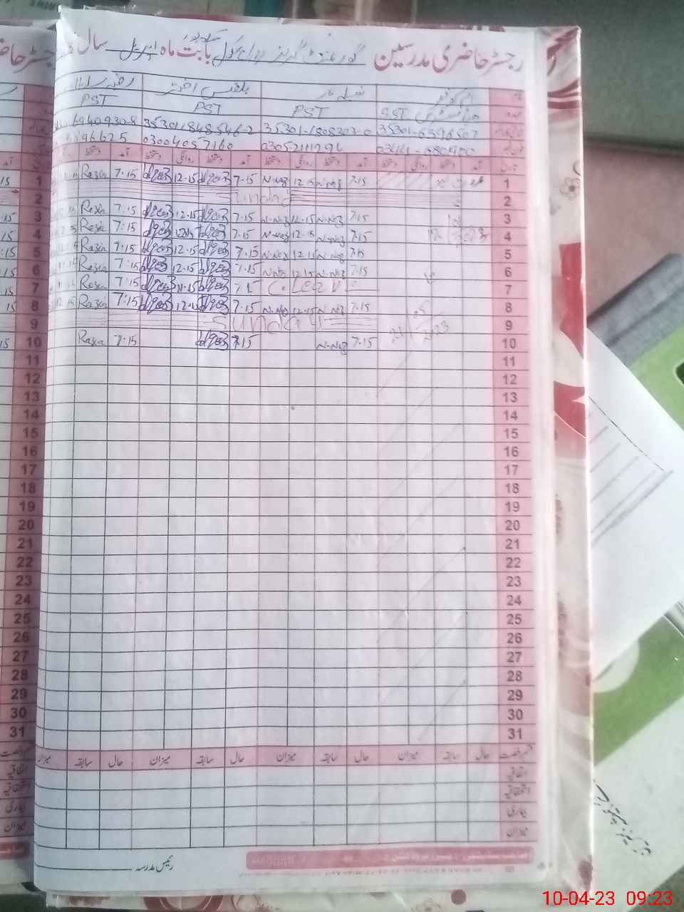 | Name: Sa**** Su**** Designation: (School Headmaster's/Headmistress's) PST Phone/Cell Number: 03**** |