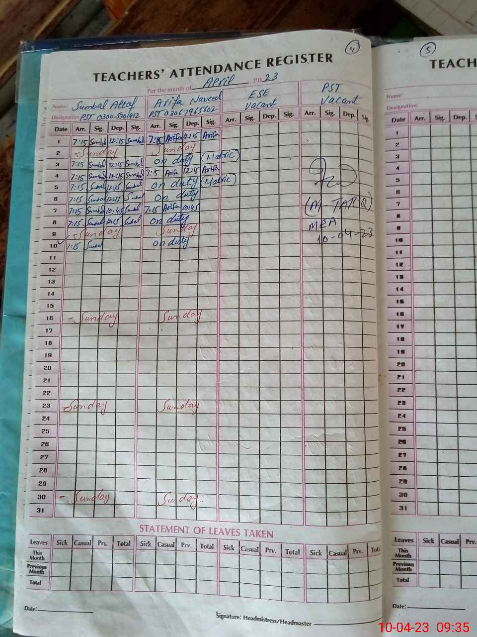 | 36**** | Ar**** Na**** | PST | Regular | 0 | 0 | 0 | 0 | 0 | 0 | 0 | 0 | 0 | Exam Duty |