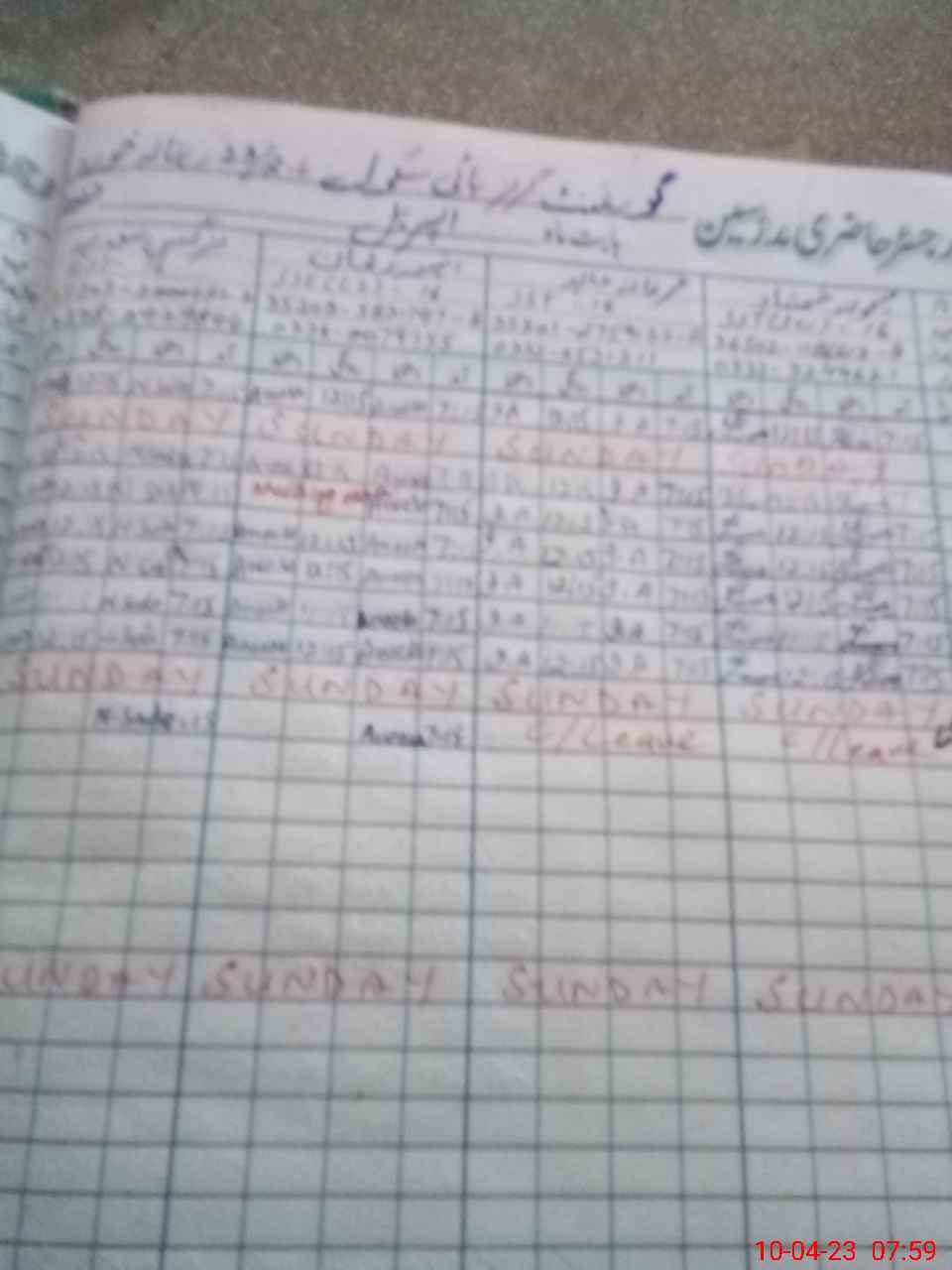 | CNIC | Full Name | Designation | R/C | Absence During Last Calender Month |