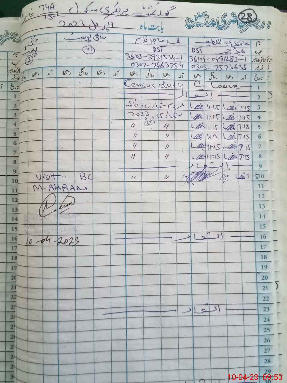 | Name: Ha**** Ab**** La**** Designation: (School Headmaster's/Headmistress's) PST Phone/Cell Number: 03**** |