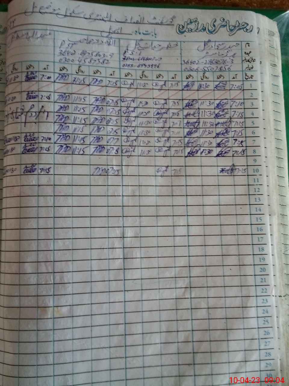 | CNIC | Full Name | Designation | R/C | Absence During Last Calender Month |