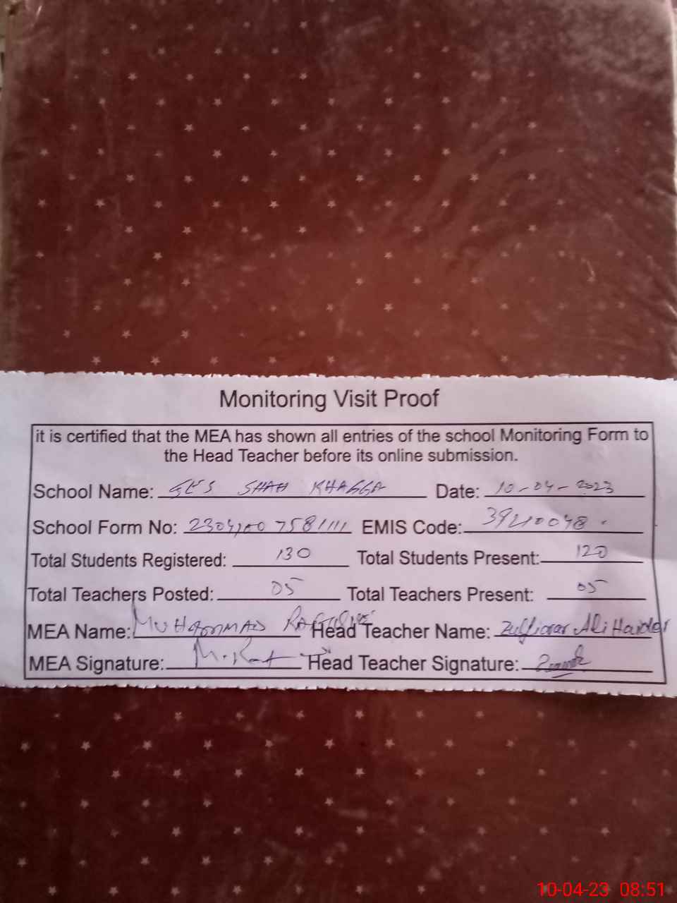 | EMIS Code: 39210048 | Name of School: GES SHAH KHAGGA PAKPATTAN | |||