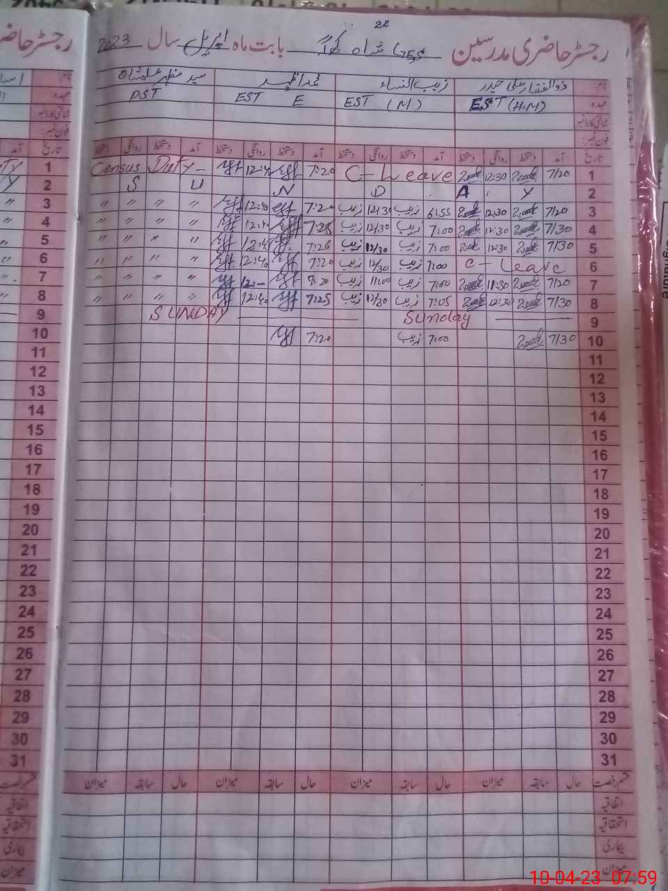 | Name: Mu**** Az**** Designation: (School Headmaster's/Headmistress's) EST Phone/Cell Number: 03**** |