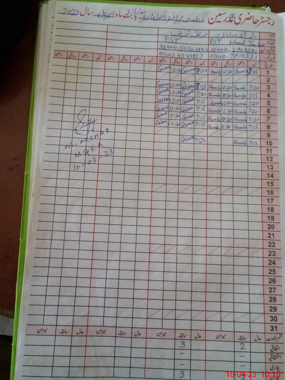| Name: MU**** AB**** Designation: (School Headmaster's/Headmistress's) Pst Phone/Cell Number: 03**** |