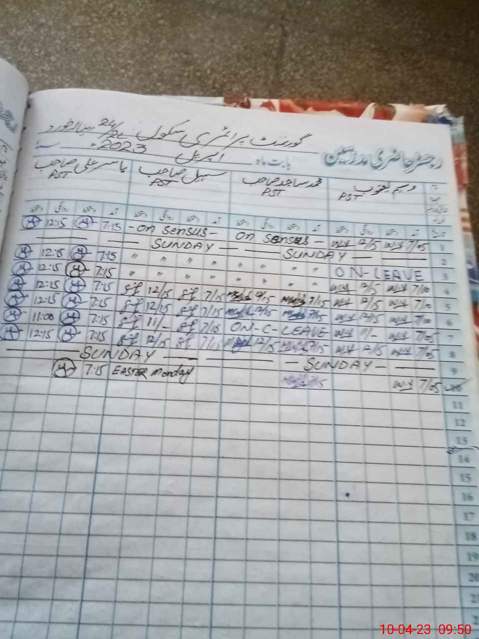 | Leave | Duty | Absent | Maternity | Medical | Ex- Pak |