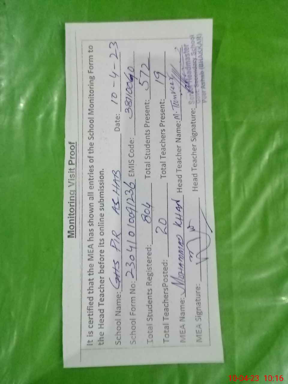 | EMIS Code: 38110040 | Name of School: GHS PIR ASHAB | |||