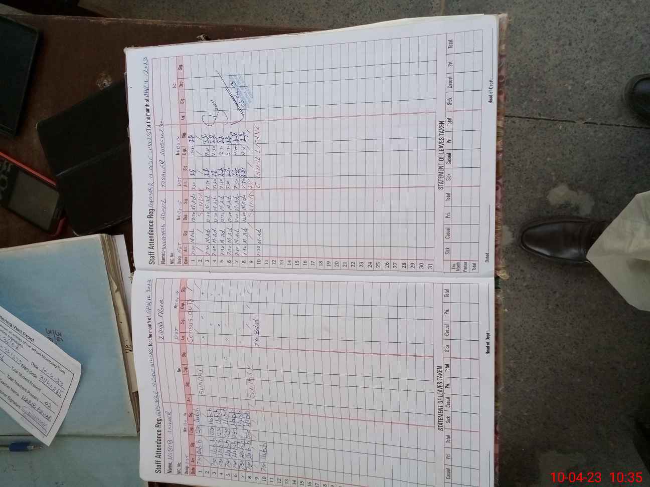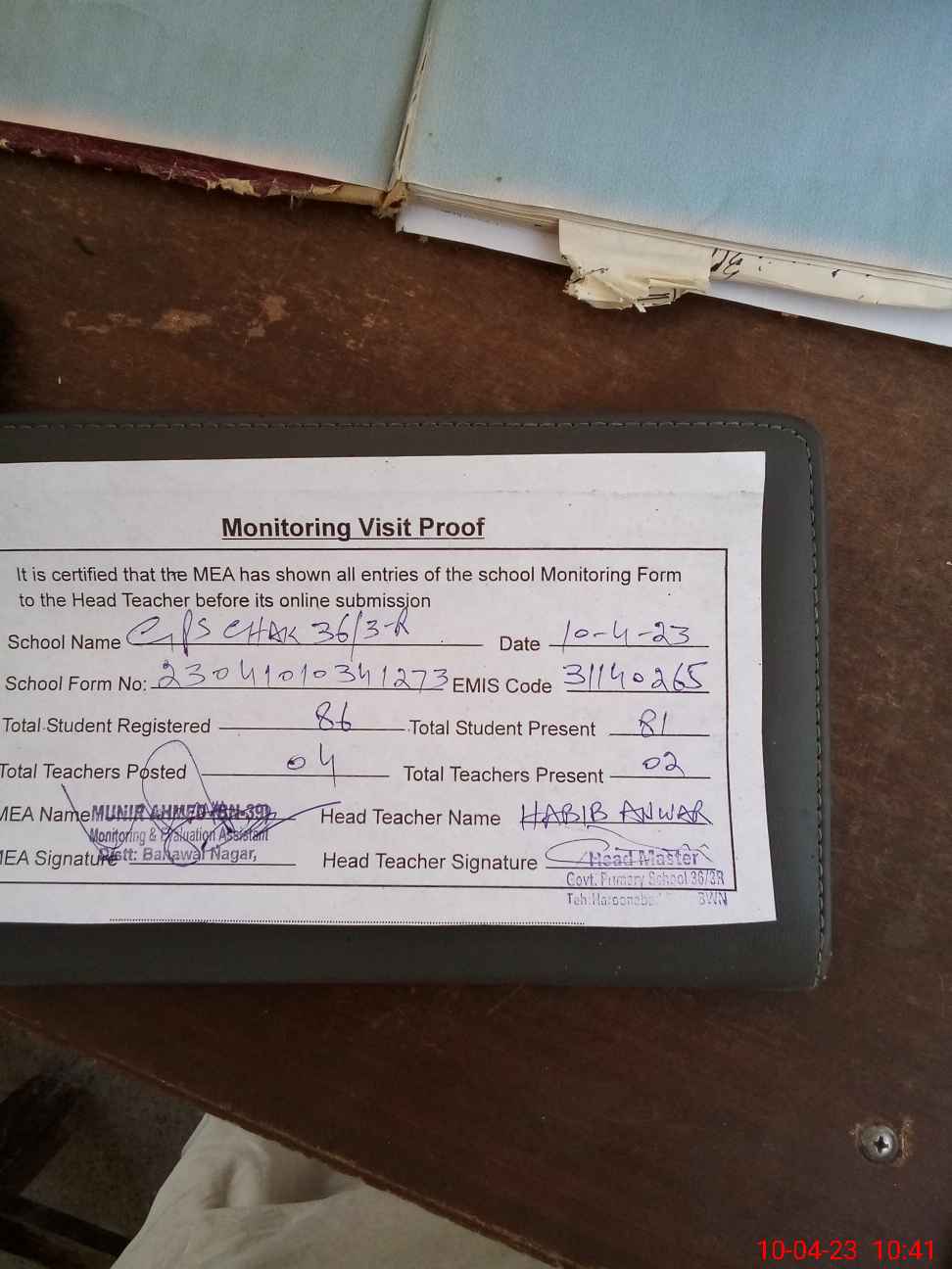 | Attendance Register | Head Teacher | MEA with School | Visit Proof |