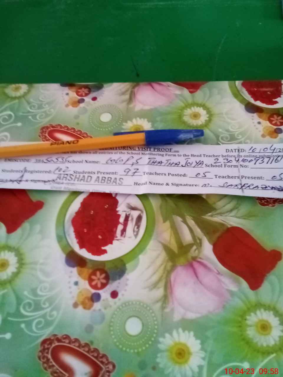 | Attendance Register | Head Teacher | MEA with School | Visit Proof |