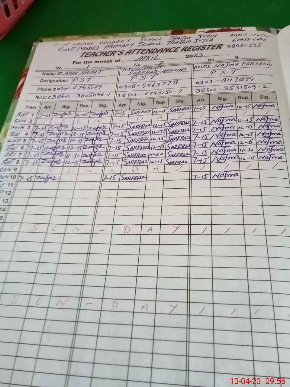 | Name: Mu**** Sa**** Designation: (School Headmaster's/Headmistress's) PTC/JV Phone/Cell Number: 03**** |