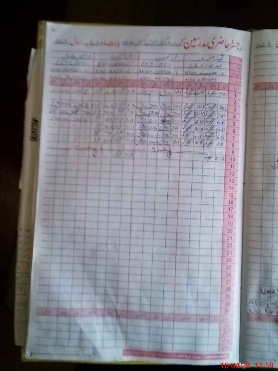 | CNIC | Full Name | Designation | R/C | Absence During Last Calender Month |