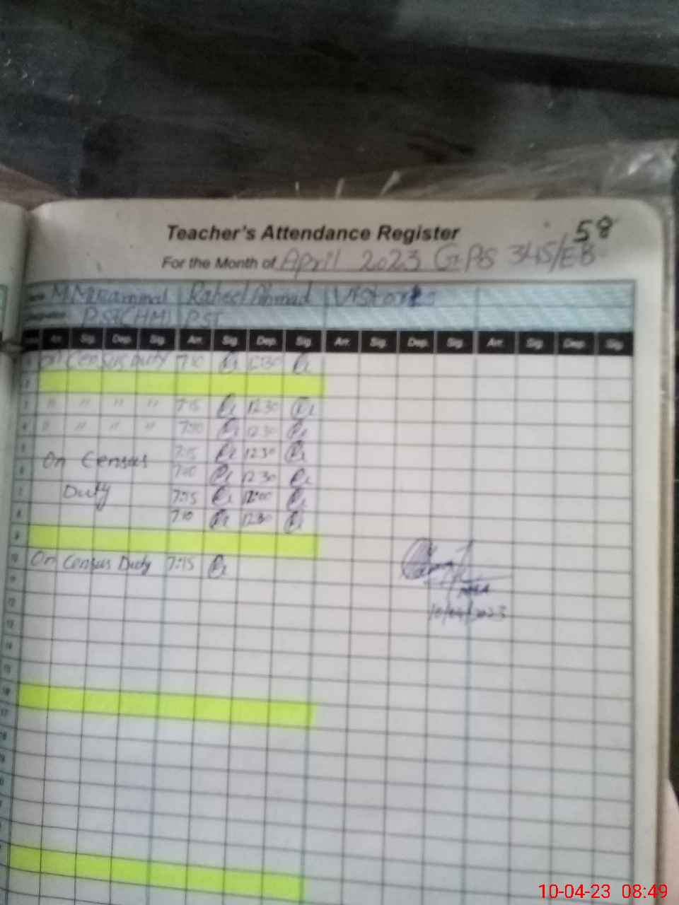 | Name: RA**** AH**** Designation: (School Headmaster's/Headmistress's) PST Phone/Cell Number: 03**** |