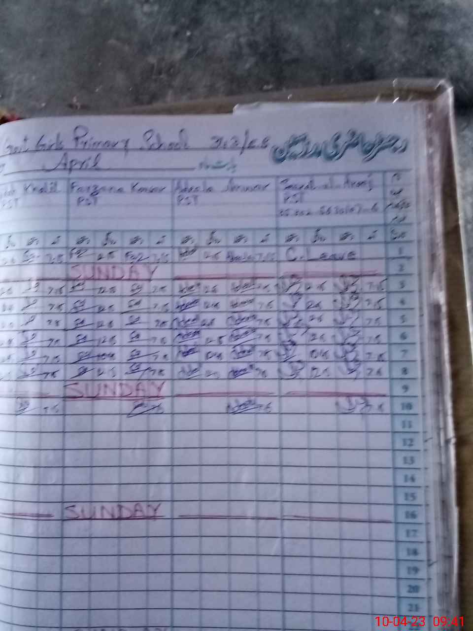 | Leave | Duty | Absent | Maternity | Medical | Ex- Pak |