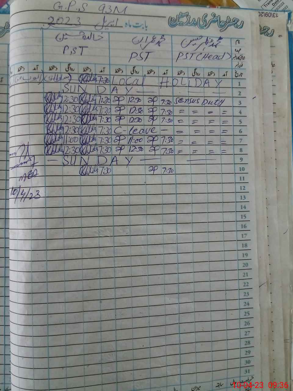 | CNIC | Full Name | Designation | R/C | Absence During Last Calender Month |