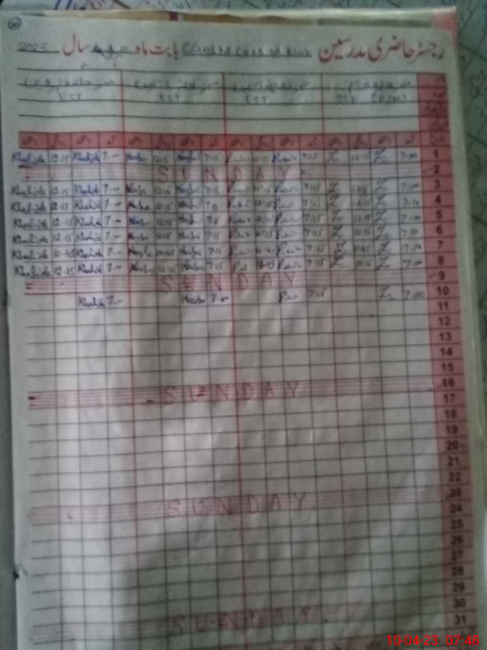 | 38**** | Wa**** Ah**** Kh**** | PST | Temporary | 0 | 0 | 0 | 0 | 0 | 0 | 0 | 0 | 0 | Exam Duty |