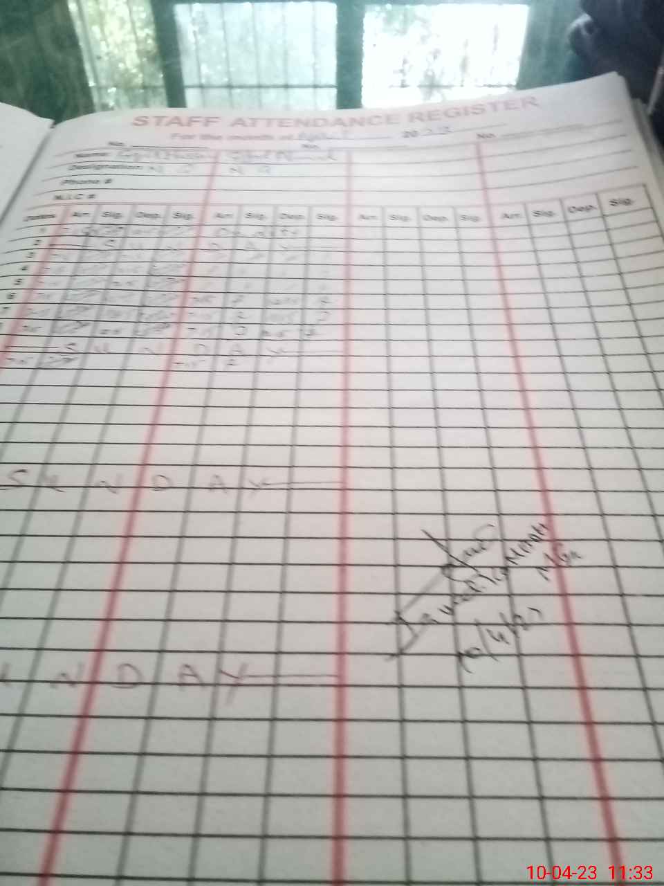 | 33**** | Sh**** Ba**** | SST | Regular | 0 | 0 | 0 | 0 | 0 | 0 | 0 | 0 | 0 | Exam Duty |