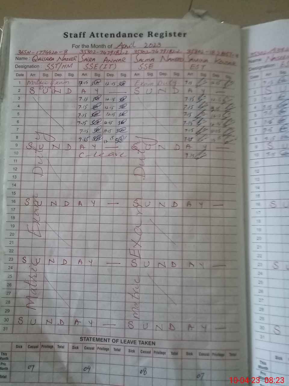 | 36**** | Qa**** Na**** | SST | Regular | 0 | 0 | 0 | 0 | 0 | 0 | 0 | 0 | 0 | Exam Duty |
