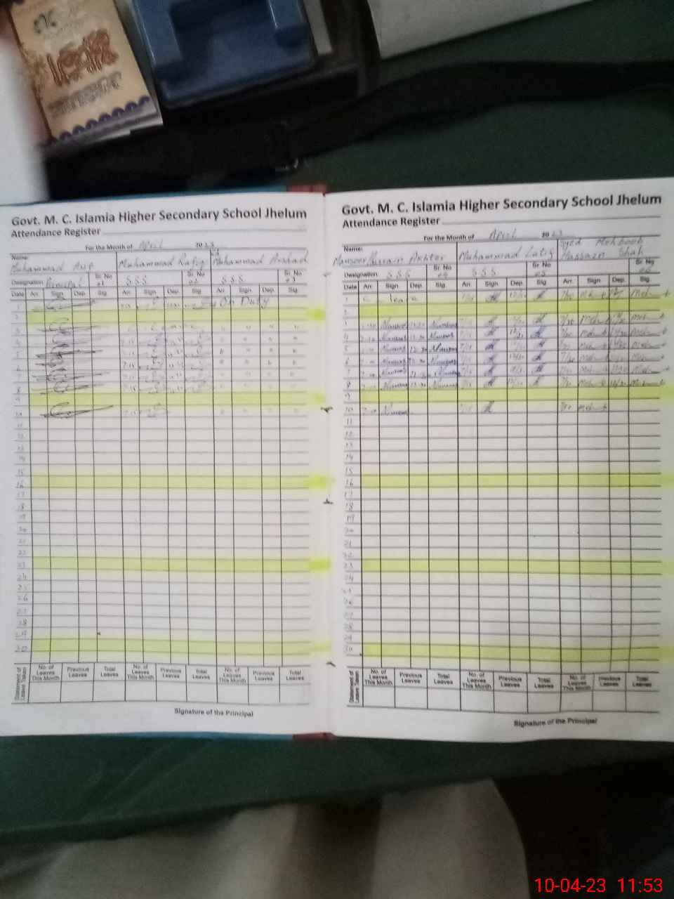 | Name: Ir**** Ha**** Designation: (School Headmaster's/Headmistress's) Principal Phone/Cell Number: 03**** |