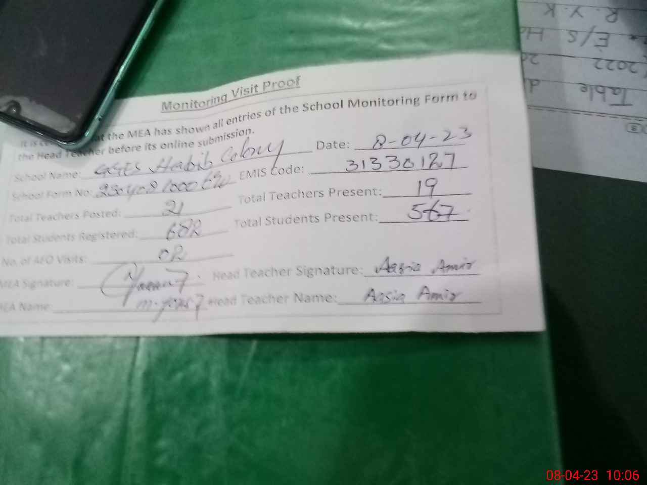 | Name: As**** Am**** Designation: (School Headmaster's/Headmistress's) S.S.T.(general) Phone/Cell Number: 03**** |