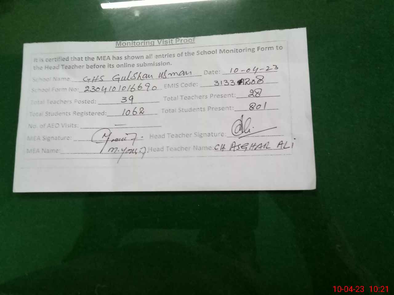 | EMIS Code: 31331208 | Name of School: GHS GULSHAN USMAN | |||