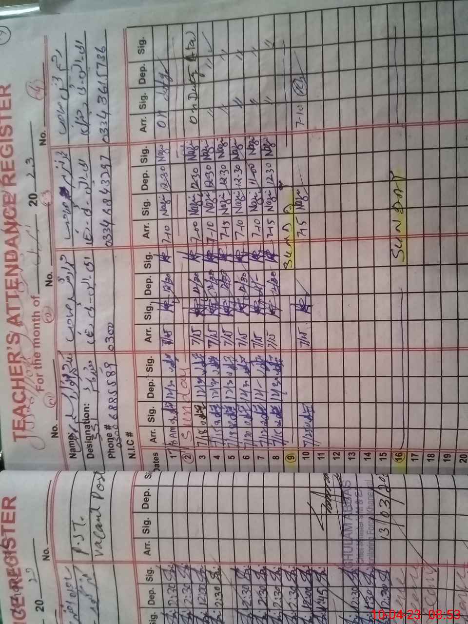 | Name: Sa**** Ma**** Qa**** Designation: (School Headmaster's/Headmistress's) EST Phone/Cell Number: 03**** |