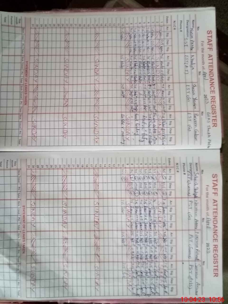 | CNIC | Full Name | Designation | R/C | Absence During Last Calender Month |