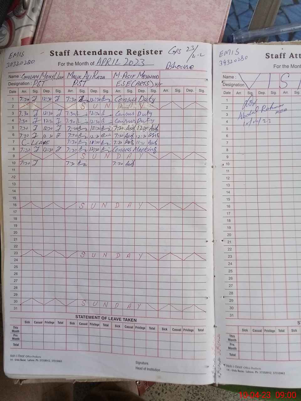 | Name: Ma**** Al**** Ra**** Designation: (School Headmaster's/Headmistress's) PST Phone/Cell Number: 03**** |