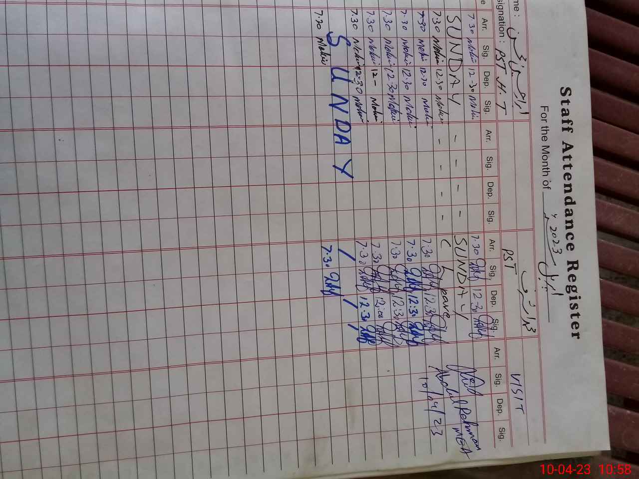 | CNIC | Full Name | Designation | R/C | Absence During Last Calender Month |