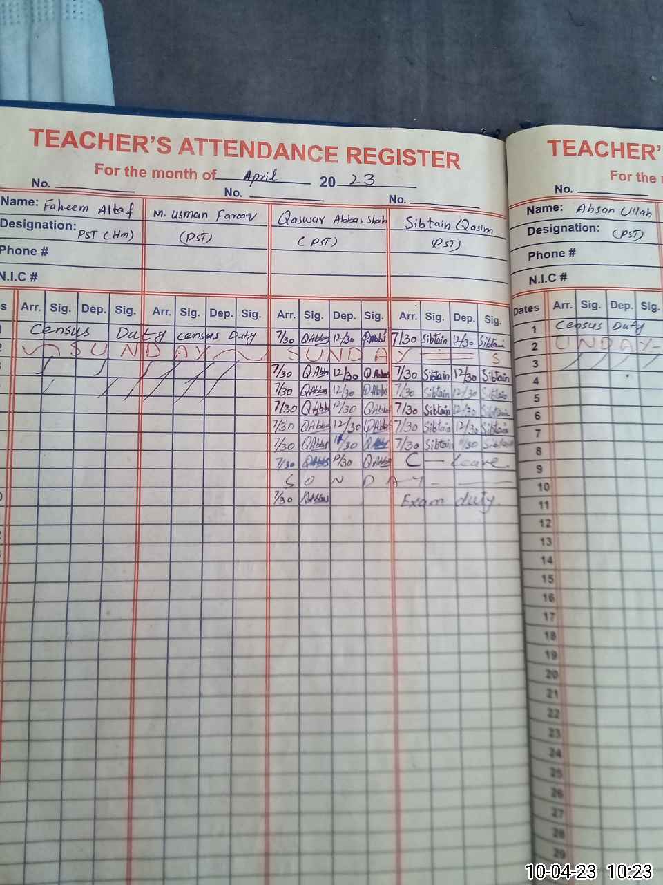 | Remarks (Use Separate Page if Required): Sibtain SB detailed on exam duty informed by qaswar Abbas SB but no proof | |||||