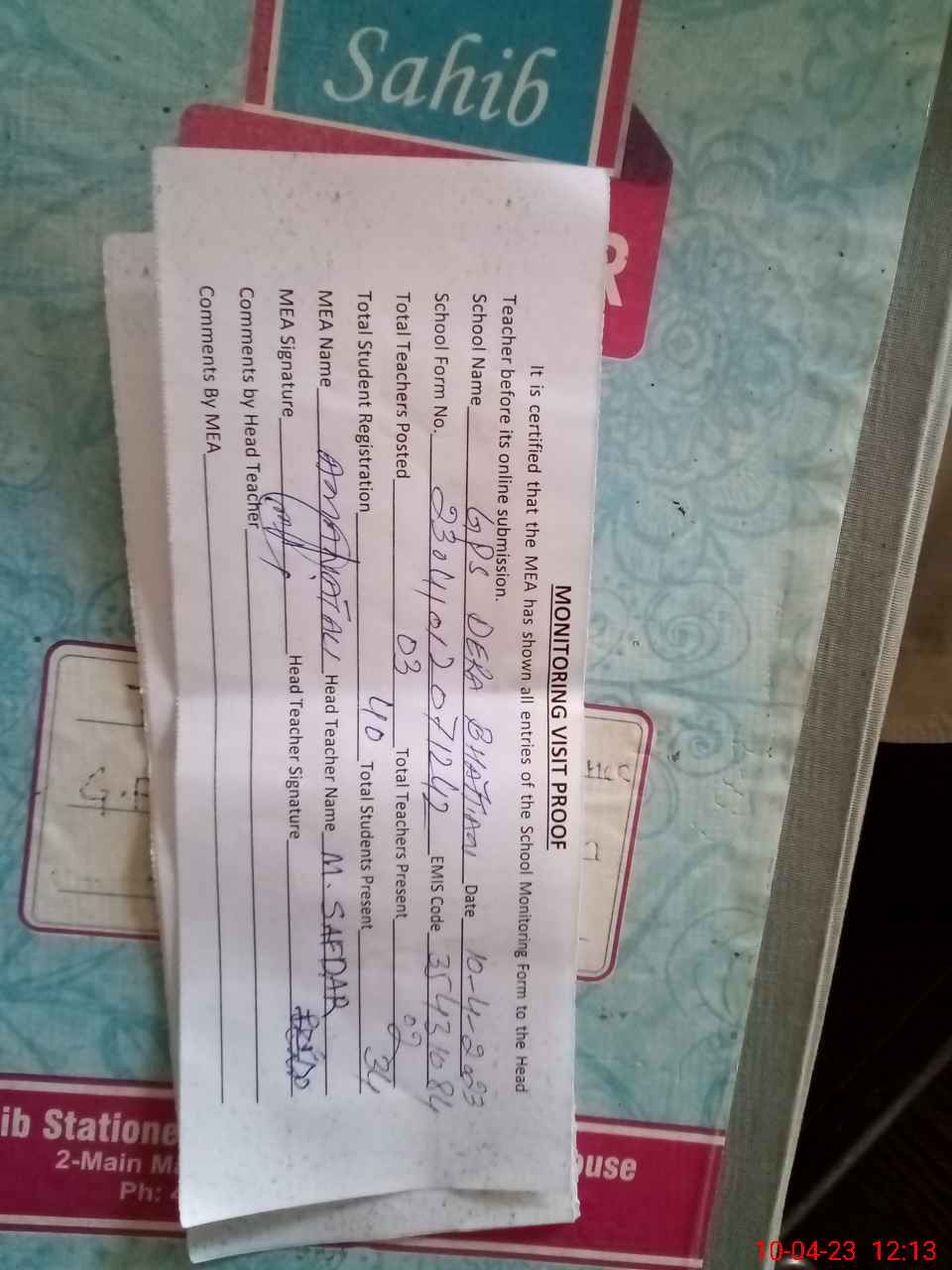 | EMIS Code: 35431084 | Name of School: GPS DERA BHATTIAN | |||